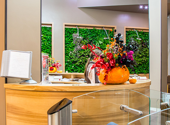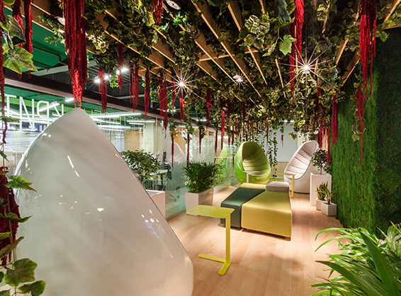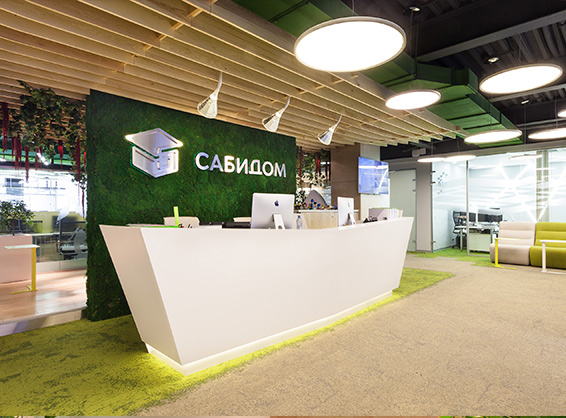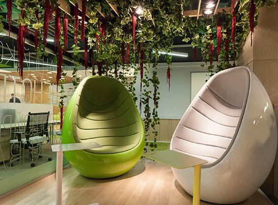 В главных холлах офиса компании установлены две «живые» фитостены, а во всех остальных кабинетах коридорах кашпо с растениями