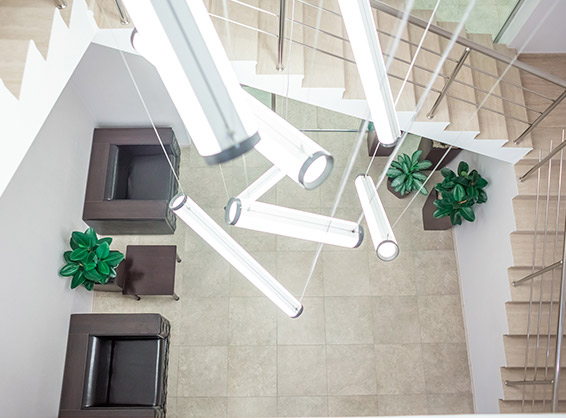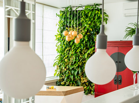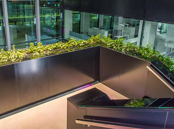 В главных холлах офиса компании установлены две «живые» фитостены, а во всех остальных кабинетах коридорах кашпо с растениями